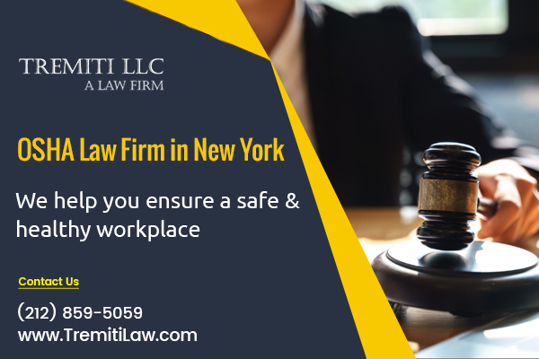 We are one of the best OSHA law firms New York that offer a range of reliable legal services and solutions. If you think OSHA standards are not being properly followed, you can Contact Tremiti LLC.